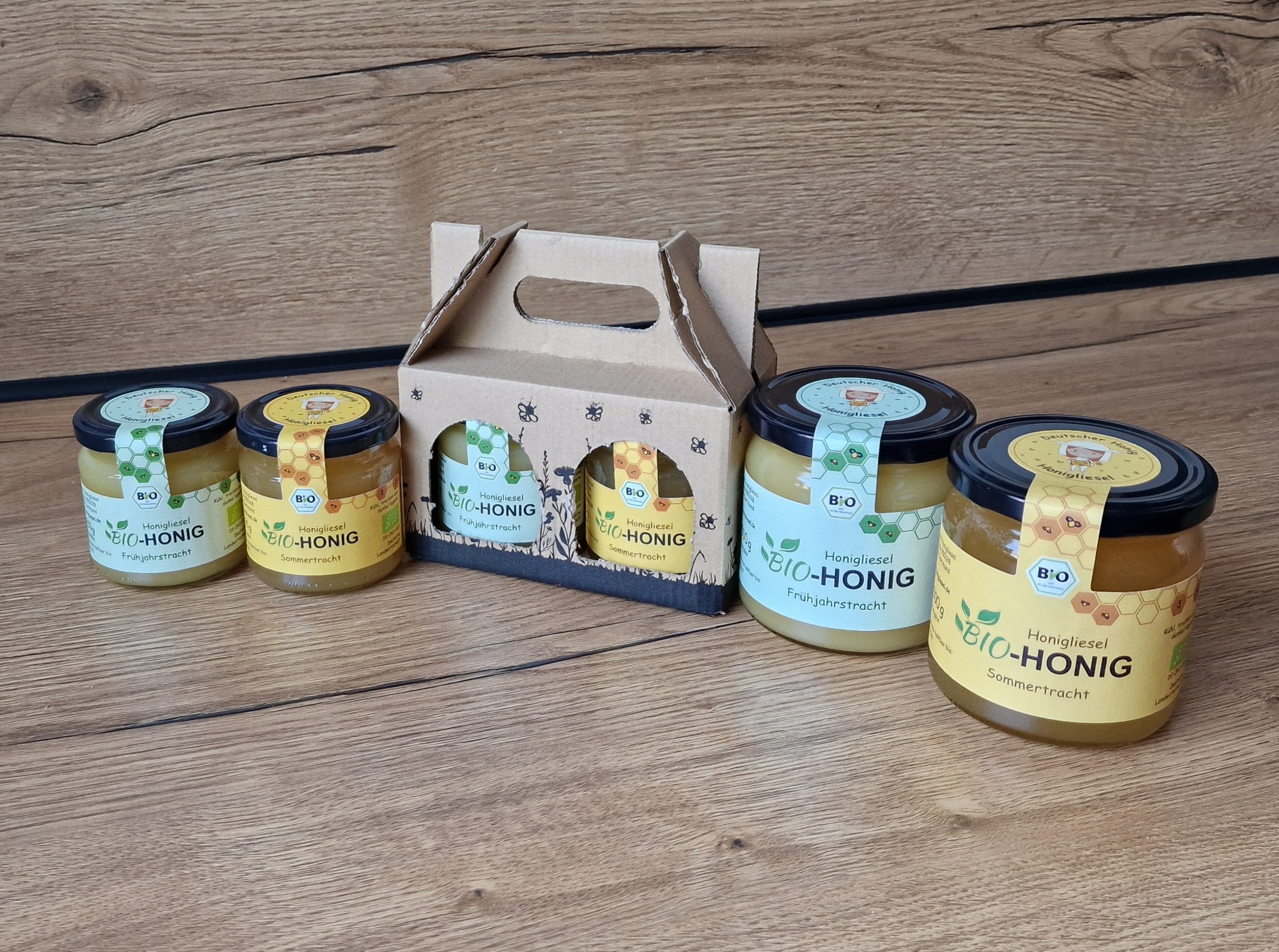 So findet sich in jedem Honigliesel Honig immer ein Querschnitt der unterschiedlichsten Blütenpflanzen eines bestimmten Gebietes wieder, mit einem unverwechselbaren Geschmacksaroma.