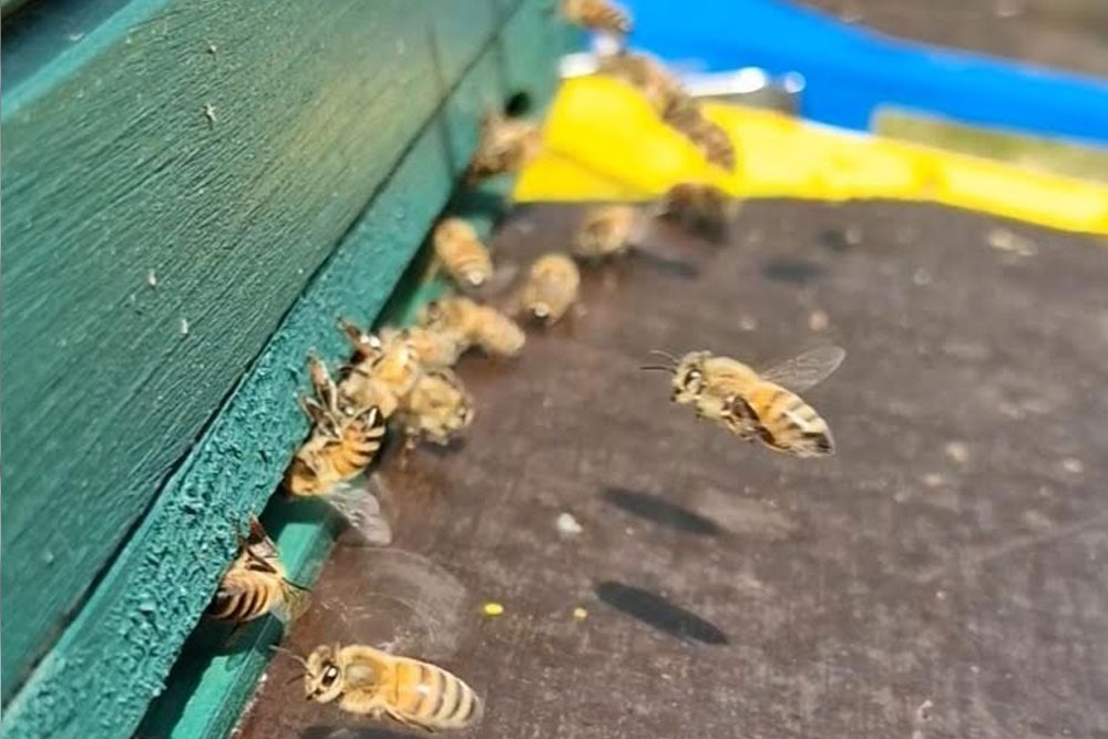 Die Sammlerbienen sind den ganzen Tag unterwegs, manche schon bei Tagesanbruch, andere erst gegen 10 oder 11 Uhr, denn auch bei den Bienen gibt es Früh- und Spätaufsteher. Ein Sammelflug dauert in der Regel 30-45 Minuten und führt die Biene 2-5 Kilometer hinaus in die Blütenwelt. Zurück am Stock-Eingang wird dann an die Wächterbienen am Einflugloch eine kleine Kostprobe übergeben. Denn von der Qualität und dem Zuckergehalt hängt es ab, wie schnell der Nektar übernommen und in den Stock eingetragen wird. Wenn der gesammelte Nektar beispielsweise sehr zuckerhaltig ist und genau dieser gerade gebraucht wird, wird die Sammlerbiene mit diesem Nektar bevorzugt hereingelassen und gleich wieder los geschickt, um weiteren Nektar genau dieser Sorte zu sammeln. Ist der gesammelte Nektar aber von einem Zuckergehalt, der zurzeit bereits reichlich im Stock eingelagert ist und deshalb vielleicht gerade gar nicht so dringend benötigt wird, ist es für die Sammlerbiene nicht mehr so leicht, den gesammelten Nektar schnell zu übergeben.