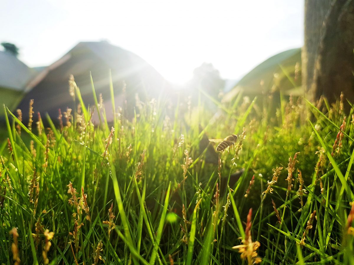 Im Flugradius (dem sogenannten Beespace), befinden sich keine Industrieanlagen, verkehrsreiche Straßen und auch keine Intensiv-Landwirtschaft, mit ihren Monokulturen.