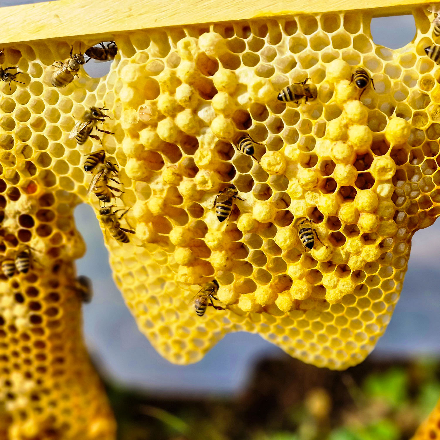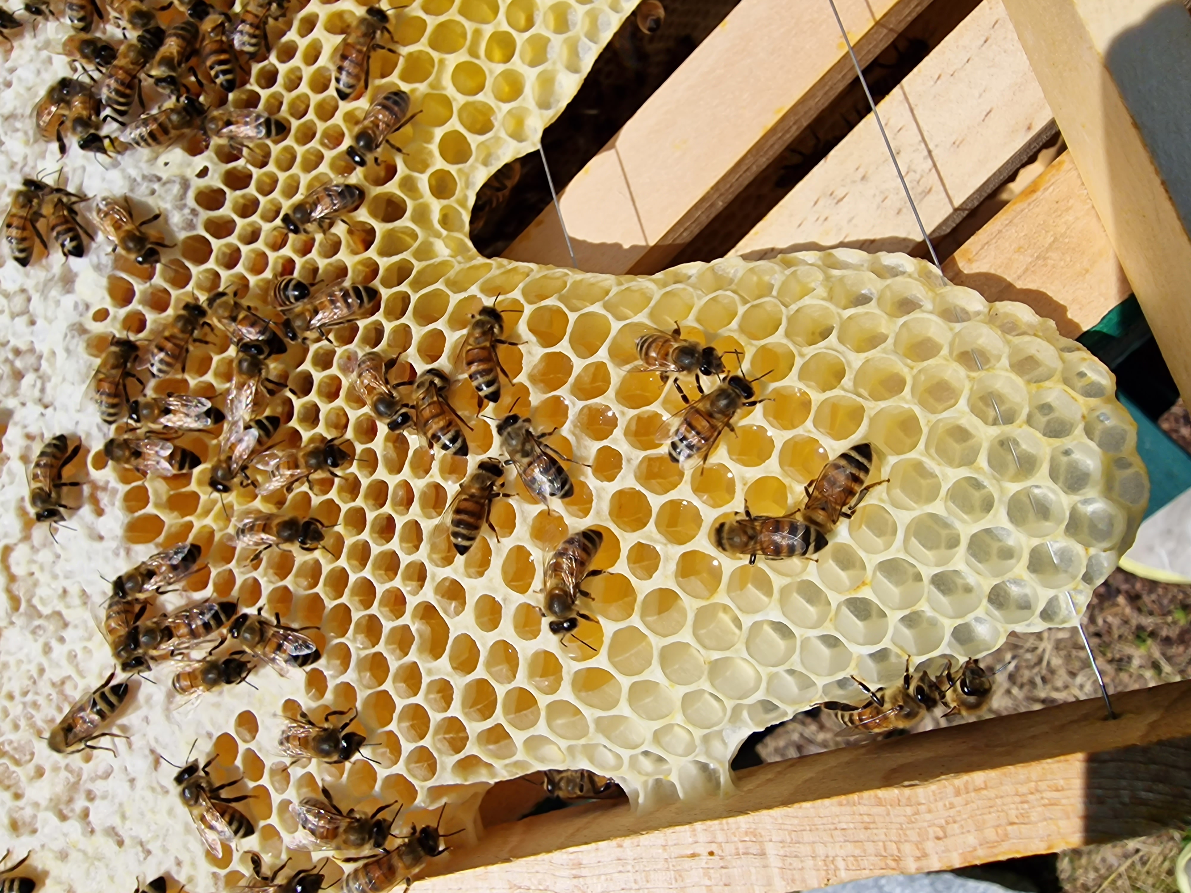 Unsere Bienen bauen ihre Waben aus eigenem Wachs, welches sie als kleine Plättchen mit ihren Wachsdrüsen am Bauch produzieren und dann verbauen. Wir verwenden kein künstliches Wachs oder andere Materialien. Um sicher zu gehen, dass die Bienenstöcke frei von Rückständen wie Pestiziden, Herbiziden oder anderen Schadstoffen sind, wird das Wachs in regelmäßigen Abständen in einem Labor untersucht, um die Bio-Qualität zu bestätigen.