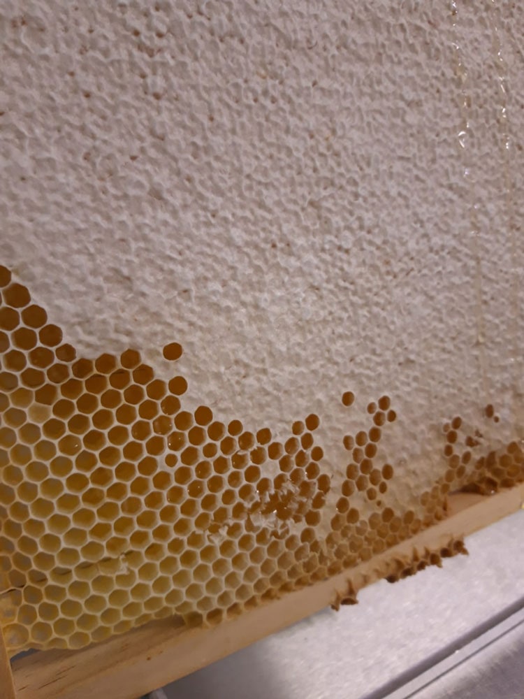 Wir entnehmen immer nur einen Teil des eingetragenen Honigs. Der übrige weitaus größere Teil, verbleibt im Bienenstock als Futtervorrat für die Aufzucht der Brut, um die Bienen mit vielen wichtigen Enzymen, Mineralstoffen und Vitaminen zu versorgen, denn diese sind in den künstlichen Futtern nicht enthalten.